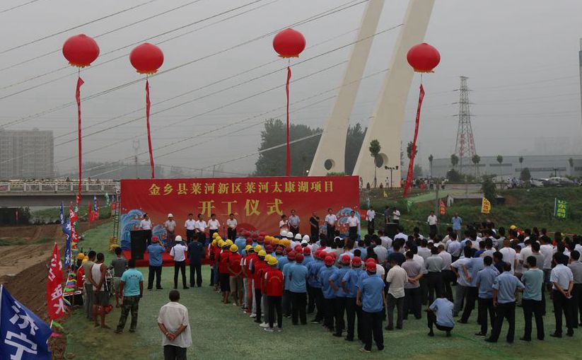 7月28日,萊河新區(qū)萊河太康湖項目開工儀式在金鄉(xiāng)縣舉行。金鄉(xiāng)縣委書記董冰,縣委副書記、縣長鄭士民,縣人大常委會主任付元琦,縣政協(xié)主席胡桂生,山東水控發(fā)展集團有限公司董事長吳東振、總經(jīng)理李加坤,濟寧金水水利工程有限公司,縣財政局、國土局等政府各部門主要負責人150余人出席開工儀式。儀式由縣委副書記、縣長鄭士民主持。
