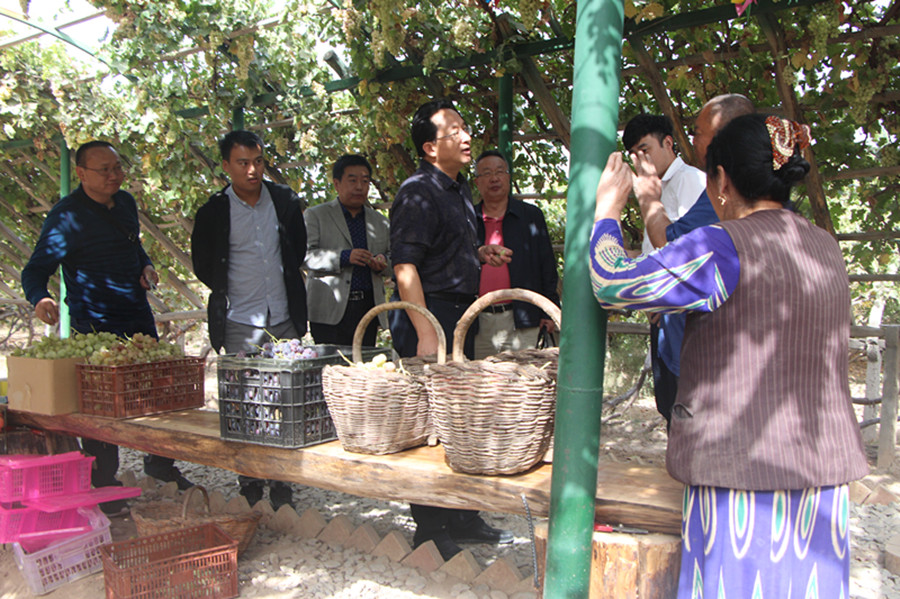 為打造農業全產業鏈,提升核心競爭力,考察團與生之道生態農業科技股份有限公司就省肥節水技術方面進行座談,研究合作方案;前往喀什地區生態葡萄園考察農產品產業化、訂單化運作模式;與喀什遠方國際物流港有限責任公司就組建干果、水果批發物流基地進行深入的交流與探討,切實解決新疆地區貨物流通問題。